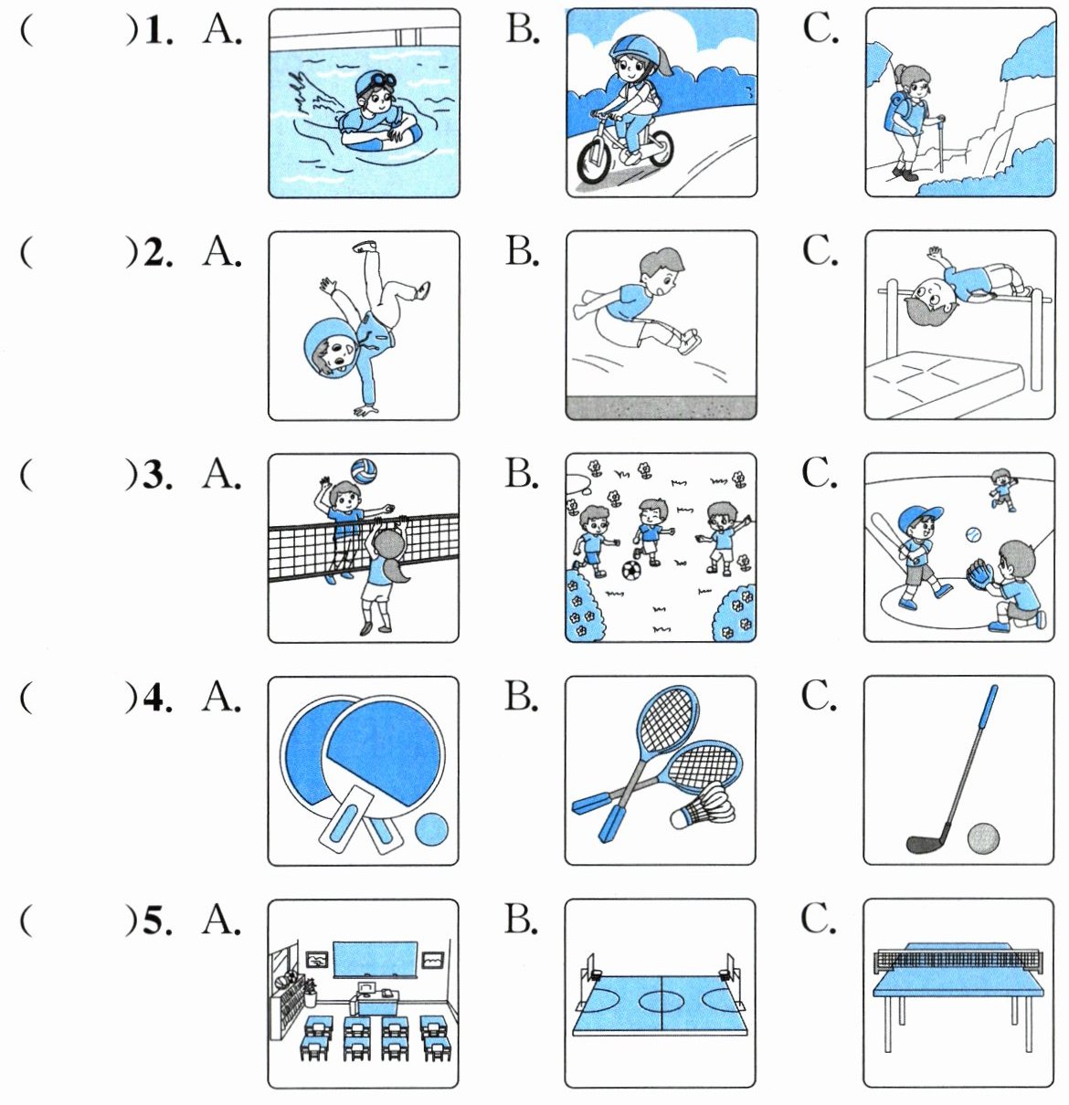 一 听两遍录音,选出与所听内容相符的图片。(5分)