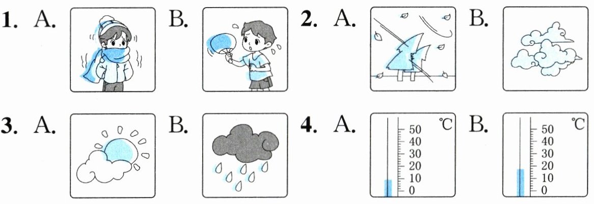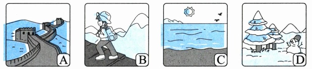听两遍录音,圈出与所听内容相符的图片。(4分)