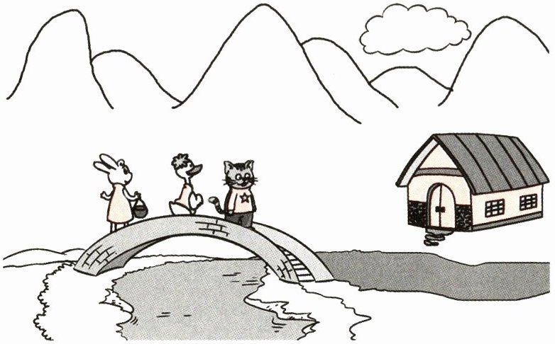 山 , 只 小 动 物 正 在 过 桥 , 小 兔 子 的 里 还 提