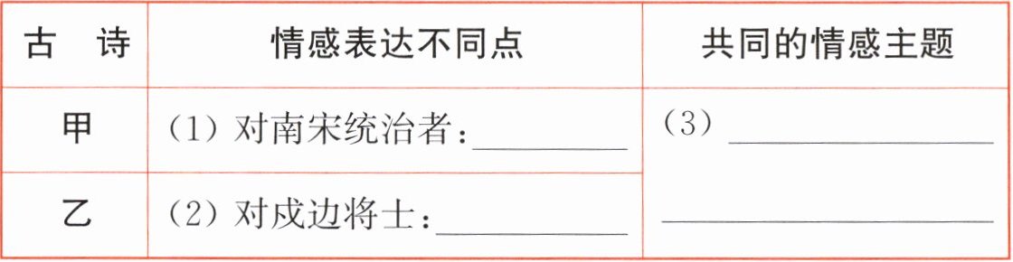3. 这两首古诗在情感表达上既有不同点,又殊途同归,有共同的情感主题。想一想,填写表格。(6 分)