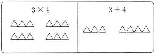 1. 用自己喜欢的符号画图表示3×4和3+4。(4分)