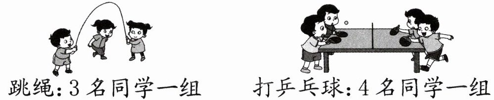 跳绳:3×8=24(名)打乒乓球:24÷4=6(组)