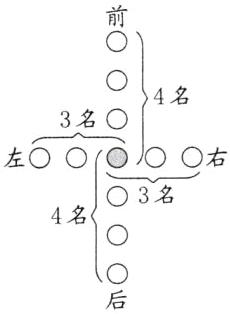 2×4-1=7(名) 2×3-1=5(名) 5×7=35(名) 解析:如图,根据题意,画出示意图,●表示小红。