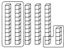 1. 玲玲用摆小正方体的方法帮助计算(如左下图),请你帮她圈一圈。