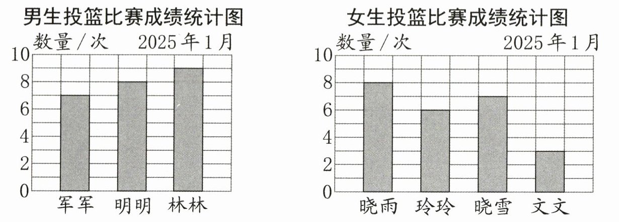 8. 新情境 五育并举 四年级一班第六小组的男生和女生进行投篮比赛,每人投 12 次,下面的统计图分别表示他们投中的次数。