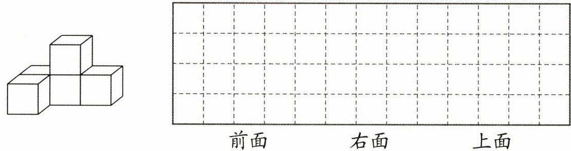 四、从前面、右面、上面看下面的物体,看到的分别是什么图形? 在方格纸上画一画。(共6分)