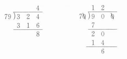 324÷79=4……8 900÷70=12……60