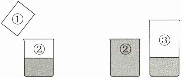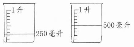 (1)将①号杯子装满水,倒入空的②号杯子中(如左下图)。估一估,②号杯子的容量是(