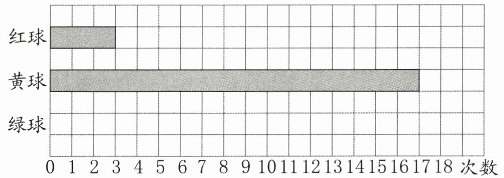 6. 新趋势 创新应用 小明进行了摸球试验,他把摸球的结果画成了条形统计图(如图)。从图中可以知道,小明一共摸了(