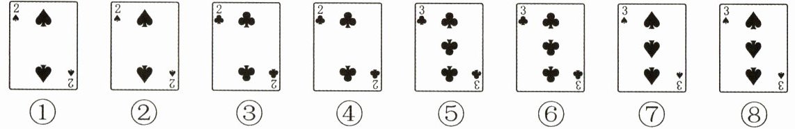 (3)任意摸1张,摸到梅花2和黑桃3的可能性相等,不可能摸到其他牌:(