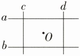 4. 两组平行线之间组成了一个长方形(如右图),点O在长方形的正中间。如果点O到直线a的距离是5 cm,到直线c的距离是7 cm,那么这个长方形的长是(