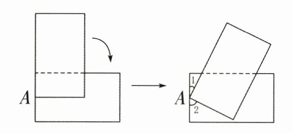 5. 新趋势 操作探究 小红将两张长方形纸上下摆放(如图),下面的一张纸固定不动,上面的一张纸绕点A顺时针旋转,她发现在旋转过程中,∠1和∠2的度数都在变化。请完成表格。