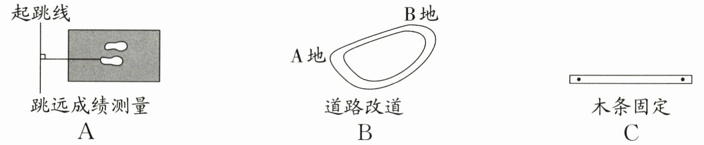 1. 新情境 生活应用 下面三个日常现象,可以用“两点之间,线段最短”来解释的是(