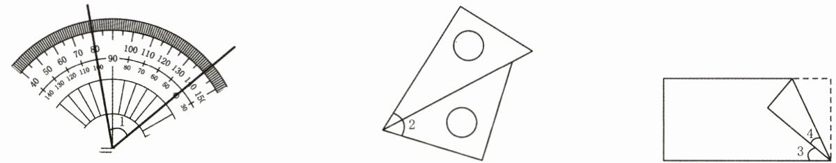 3. 如下图,量角器测量的∠1= (