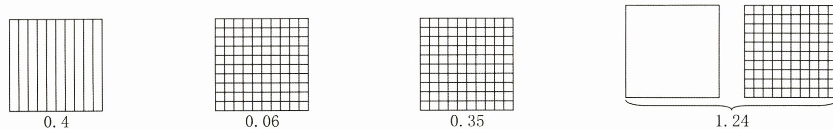 1. 图略 解析:涂4个长直条;涂6个小方格;涂35个小方格;涂左边的大正方形和右边的24个小方格。 2. 图略 解析:直线上每小格表示0.1,找到每个小数的对应位置描点即可。