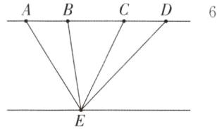 解析:一共可以画出6个不同的三角形。分别是三角形EAB,三角形EAC,三角形EAD,三角形EBC,三角形EBD,三角形ECD。