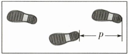 3. 新情境 知识科普 如图所示为某成年人步行时留下的脚印,p表示步长,指连续两个脚后跟之间的距离(单位:米),n表示每分钟走的步数。p= n÷140 和n= 140p 都可以用来描述n和p之间的关系。