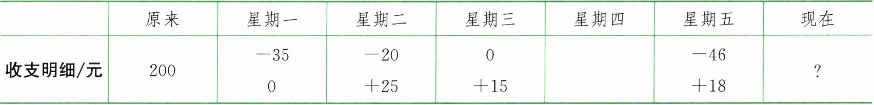 3. 新情境 生活应用 手机支付简单又便捷。下表是张叔叔某个星期电子钱包的收支明细。(正数表示收入,负数表示支出)