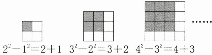 (2)用含有字母$n(n= 2、3、4……)$的式子表示规律:$n^{2}-(n-1)^{2}=$(