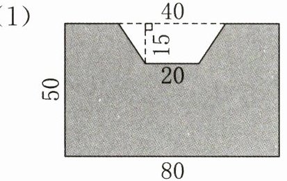 (1)80×50=4000(平方米)(20+40)×15÷2=450(平方米)4000-450=3550(平方米) (2)(15+10)×10÷2=125(平方米)10×10÷2=50(平方米)125-50=75(平方米)