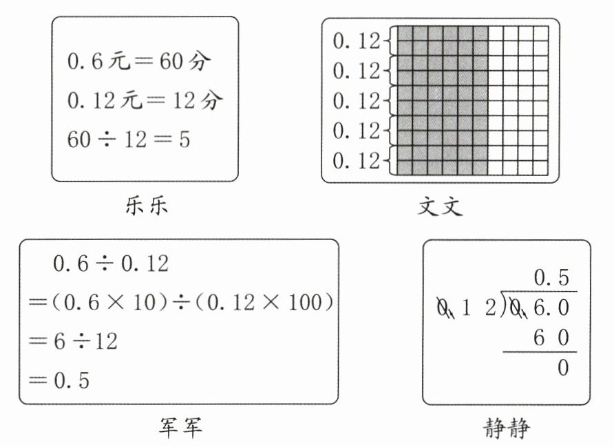 3. 下面是四名同学计算 0.6÷0.12 的方法,其中(