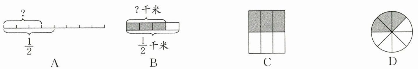 3. 在求$\frac {1}{2}×\frac {3}{4}$是多少的过程中,画图表示不正确的是(
