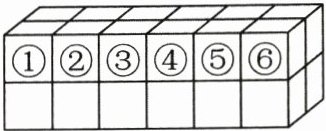 5. 如图所示的长方体是由棱长为1分米的小正方体拼成的。若从编号①②③④⑤⑥的六个小正方体中拿掉两个,使所剩部分的表面积比原来长方体的表面积多4平方分米,则下面可以拿掉的小正方体是(