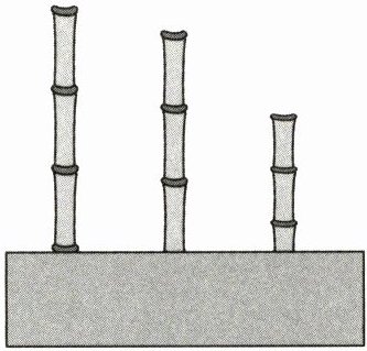 45 解析:根据三根竹子在篱笆墙下面的高度相同,可得出等式,最高的竹子地面以上的高度×$(1-\frac{3}{4})=$中等高的竹子地面以上的高度×$(1-\frac{8}{11})=$最矮的竹子地面以上的高度×$(1-\frac{5}{8})$,即最高的竹子地面以上的高度×$\frac{1}{4}=$中等高的竹子地面以上的高度×$\frac{3}{11}=$最矮的竹子地面以上的高度×$\frac{3}{8}$.设等式的结果为1,即可得出三根竹子地面以上的高度比为$4:\frac{11}{3}:\frac{8}{3}=12:11:8$,最高的竹子地面以上的部分高$465×\frac{12}{12+11+8}=180$(厘米),篱笆墙高$180×(1-\frac{3}{4})=45$(厘米)。