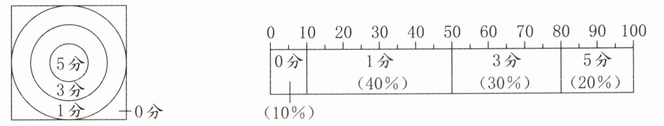 3. 如图,俊俊在玩飞镖游戏,他一共扔了 20 次飞镖,将这 20 次的得分,按不同的得分情况,用横向条形图表示。俊俊一共得了(
