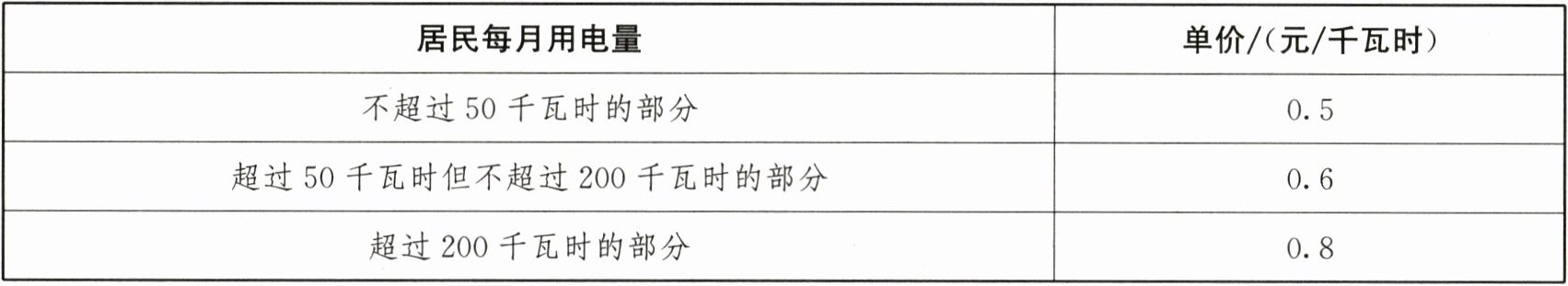 | 居民每月用电量 | 单价/(元/千瓦时) |