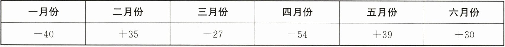 | 一月份 | -40 | 二月份 | +35 | 三月份 | -27 | 四月份 | -54 | 五月份 | +39 | 六月份 | +30 |