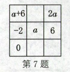 7. 如图,若图中各行、各列及对角线上的三个数之和都相等,则a= ______.