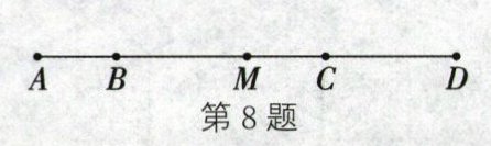 8. (2024·泰州靖江期末)如图,B,C两点把线段AD分成三部分,AB:BC:CD= 3:8:5,M为AD的中点.若CM= 15,则AD= ______.