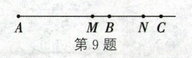 9. 如图,AB= 20 cm,C是线段AB延长线上一点,M为线段AC的中点,在线段BC上存在一点N(点N在点M的右侧且不与点B,C重合),使得6MN-NB= 60 cm,BN= kCN,则k的值为______