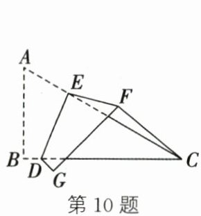 10. 如图,在$Rt△ABC$中,$∠B= 90^{\circ },∠A= 60^{\circ },BC= 9$,点D在线段BC上,且$BD= 1$,E是线段AC上的一动点,连接DE,将四边形ABDE沿直线DE翻折,得到四边形FGDE,连接CF,则线段CF长的最小值为____.