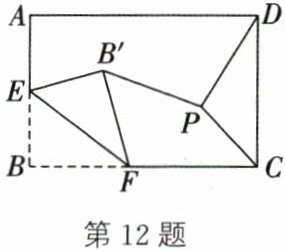 12. (15分)如图,在矩形ABCD中,$AB= 4,BC= 6$,E是AB的中点,F是BC边上一动点,将$△BEF$沿着EF翻折,使得点B落在点$B'$处,矩形内有一动点P,连接$PB'$、PC、PD,求$PB'+\sqrt {2}PC+PD$的最小值.