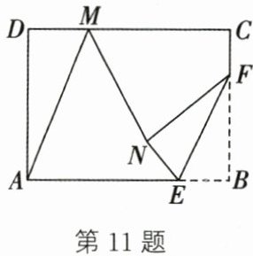 11. (15分)(2025·盐城亭湖模拟)如图,在矩形ABCD中,$AB= 4,AD= 3$,点E在AB上,且$BE= 1$,M、F分别为边DC、BC上的动点,将$△BEF$沿直线EF翻折得到$△NEF$,连接AM、MN,求$AM+MN$的最小值.