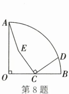 8. 如图,$\overset{\frown}{AB}所对圆心角∠AOB= 90^{\circ }$,半径为6,C是OB的中点,D是$\overset{\frown}{AB}$上一点,把CD绕点C逆时针旋转$90^{\circ }$得到CE,连接AE,则AE长的最小值是____.