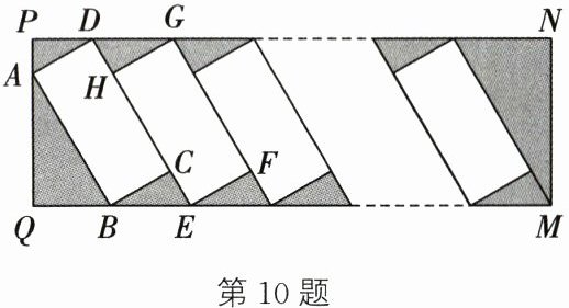 10. (16分)(2024·广东)我国新能源汽车为全球应对气候变化和绿色低碳转型作出了巨大贡献.为满足新能源汽车的充电需求,某小区增设了充电站,如图所示为矩形$PQMN$充电站的平面示意图,矩形$ABCD$是其中一个停车位.经测量,$\angle ABQ= 60^{\circ }$,$AB= 5.4\ m$,$CE= 1.6\ m$,$GH\perp CD$,$GH$是另一个停车位的宽,所有停车位的长宽相同,按图示并列划定.根据信息回答问题:(参考数据:$\sqrt {3}\approx 1.73$)