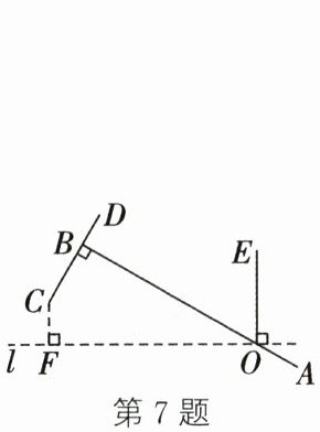 7. 如图,$AB\perp CD于点B$,$AB与水平线l相交于点O$,$OE\perp l$.若$BC= 4$分米,$OB= 12$分米,$\angle BOE= 60^{\circ }$,则点$C到水平线l的距离CF$为____分米(结果用含根号的式子表示).
