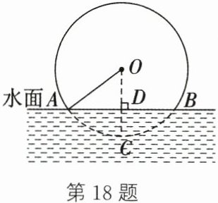 18. (8分)(2024·盐城响水一模)唐代李皋发明了“桨轮船”,这种船是原始形态的轮船,是近代明轮航行模式之先导.如图,某桨轮船的轮子被水面截得的弦AB长8m,设圆心为O,$OC\perp AB$交水面AB于点D,轮子的吃水深度CD为2m,求该桨轮船的轮子直径.