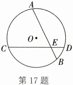 17. (8分)(2024·盐城盐都段考)如图,点A、C、B、D在$\odot O$上,且$\overset{\frown}{AB}= \overset{\frown}{CD}$,弦AB、CD相交于点E,AE与CE相等吗? 为什么?