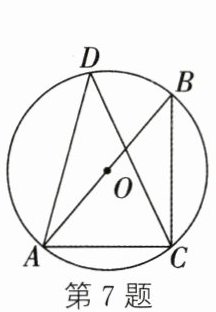 7. 如图,点$A$、$B$、$C$、$D在\odot O$上,$AB是\odot O$的直径,$\angle CAB = 50^{\circ}$,则$\angle D$的度数为 (