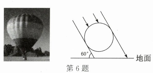 6. (2024·潍坊期中)如图,当太阳光线与地面成60°的角时,测得空中热气球在地面上的影长是10m,则热气球的直径是 ( )
