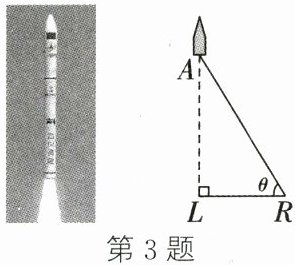 3. 新情境 新科技(2024·长春)2024年5月29日16时12分,"长春净月一号"卫星搭乘谷神星一号海射型遥二运载火箭在黄海海域成功发射.如图,当火箭上升到点A时,位于海平面点R处的雷达测得点R到点A的距离为a千米,仰角为θ,则此时火箭距海平面的高度AL为 (
