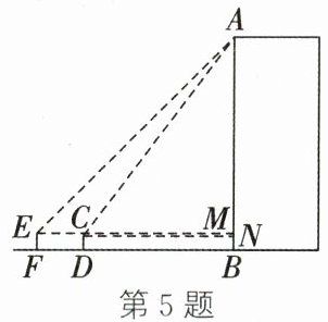 mEM=BFBD=CNEM⊥ABCN⊥AB设BD=CN=x mEM=BF=DF+BD=(x+5)m在Rt△AEM中∠AEM=45°AM=EM·tan45°=(x+5)m在Rt△ACN中∠ACN=53°AN=CN·tan53°≈x·$\frac{4}{3}$