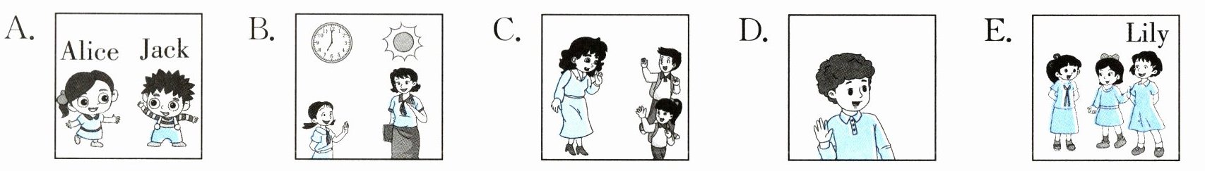九、给下列句子或对话选择对应的图片。(每小题2分,共10分)