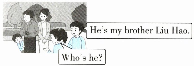 )2. 当你向老师介绍你的弟弟戴维时,你可以说:This is David. He's my brother.(