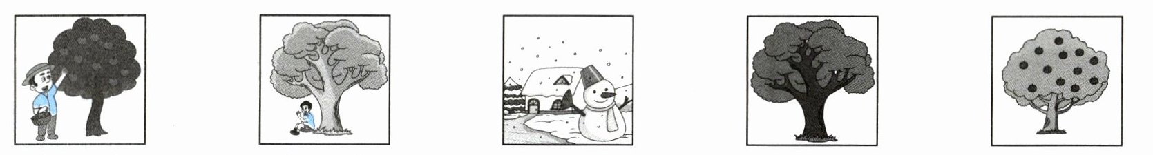 这是一道英语阅读理解中的信息排序题,考查学生对短文内容的理解和图片信息的匹配能力。解题的关键在于仔细阅读短文,明确每个季节苹果树的状态以及对应的事件,然后将这些信息与所给图片进行对比,从而确定图片的正确顺序。