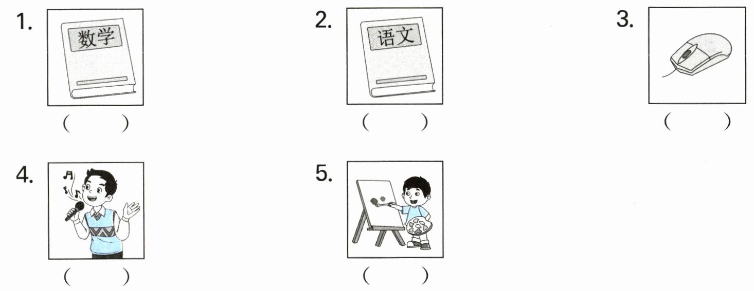 十、Tom 在美术课上画了几幅图片,请你给他的图片选择合适的句子。(每小题1分,共5分)